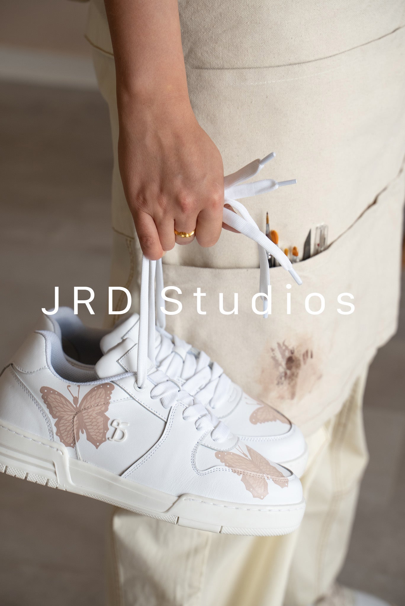 2021 was a big year for the brand, the foundations had been laid in 2020 and JRD continued to gain greater attraction from audiences across the world through Instagram and Tiktok. The brand established the major pillar for its identity – the Mocha colour-way, a beautiful selection of hand-painted neutrals and timeless creations on classic silhouettes. As the global audiences grew, orders came in from around the world. The popularity of the Mocha range made it difficult to manage constant demand. This led to the requirement for monthly drops to sell out within minutes of launching. This was a really exciting time for the brand and showed the potential of what it could become. The success of 2021 meant JRD could finally graduate from its humble bedroom brand, and the first JRD studio opened.