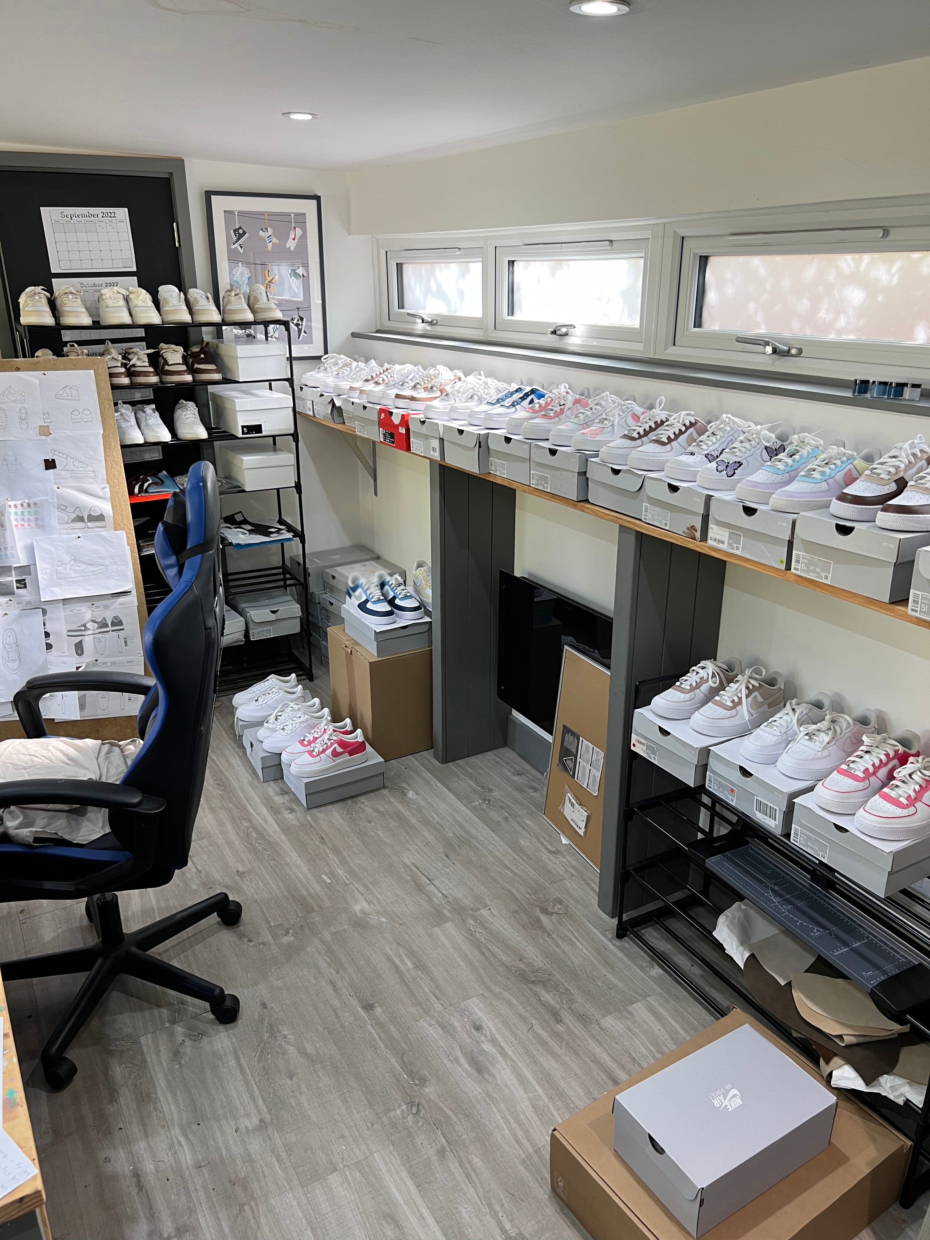 In 2020 as much of the world stood still, this was an opportunity for the brand to capitalise on an engaged online market. Strong relations were born between the brand and influencers such as Oliva Bowen and traction from audiences across the UK flourished. John hand painted 2 pairs of shoes for Olivia, choosing carefully the design based on her beloved pet dogs and a sentimental tattoo. This relationship supported opening new doors for JRD collaborations with influencers and shortly after John designed a pair of Scorpio inspired shoes for Daisy O'Donell. The JRD Community across Instagram and Tiktok was growing rapidly, and it was becoming clear there was only so much longer this “bedroom brand” could continue trading from its current premises.